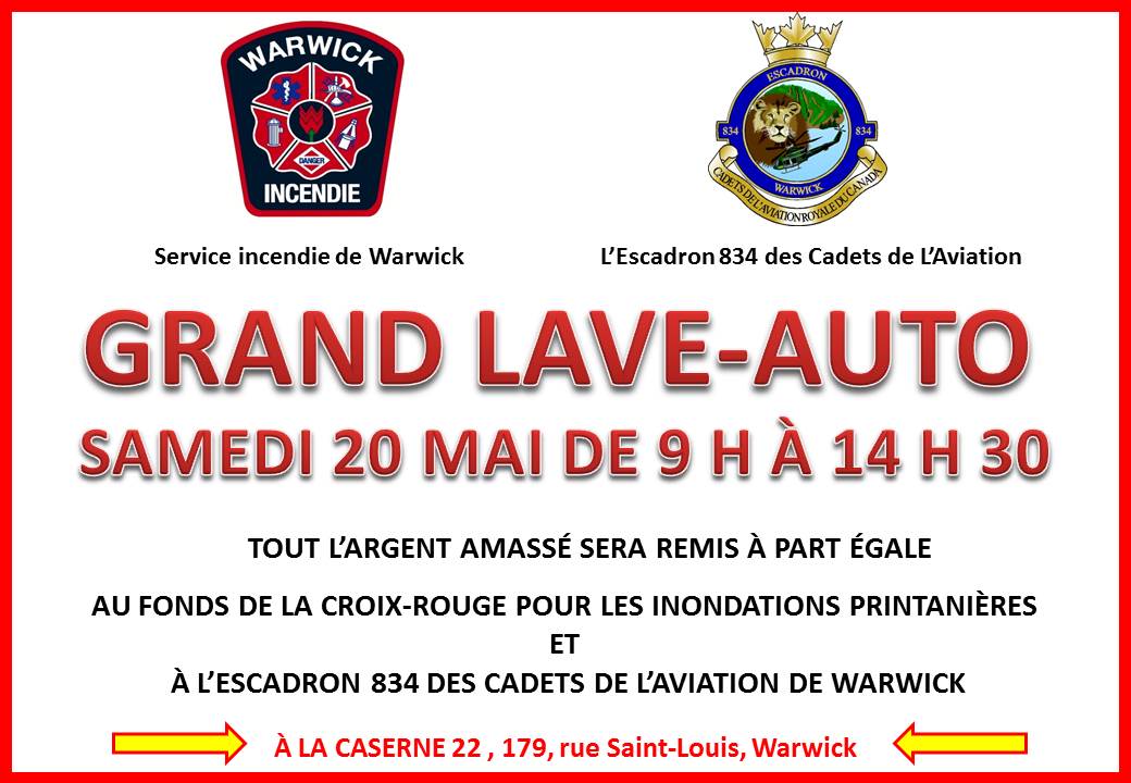 Lave-auto du Service incendie de Warwick et de l’Escadron 834 des cadets de l’aviation