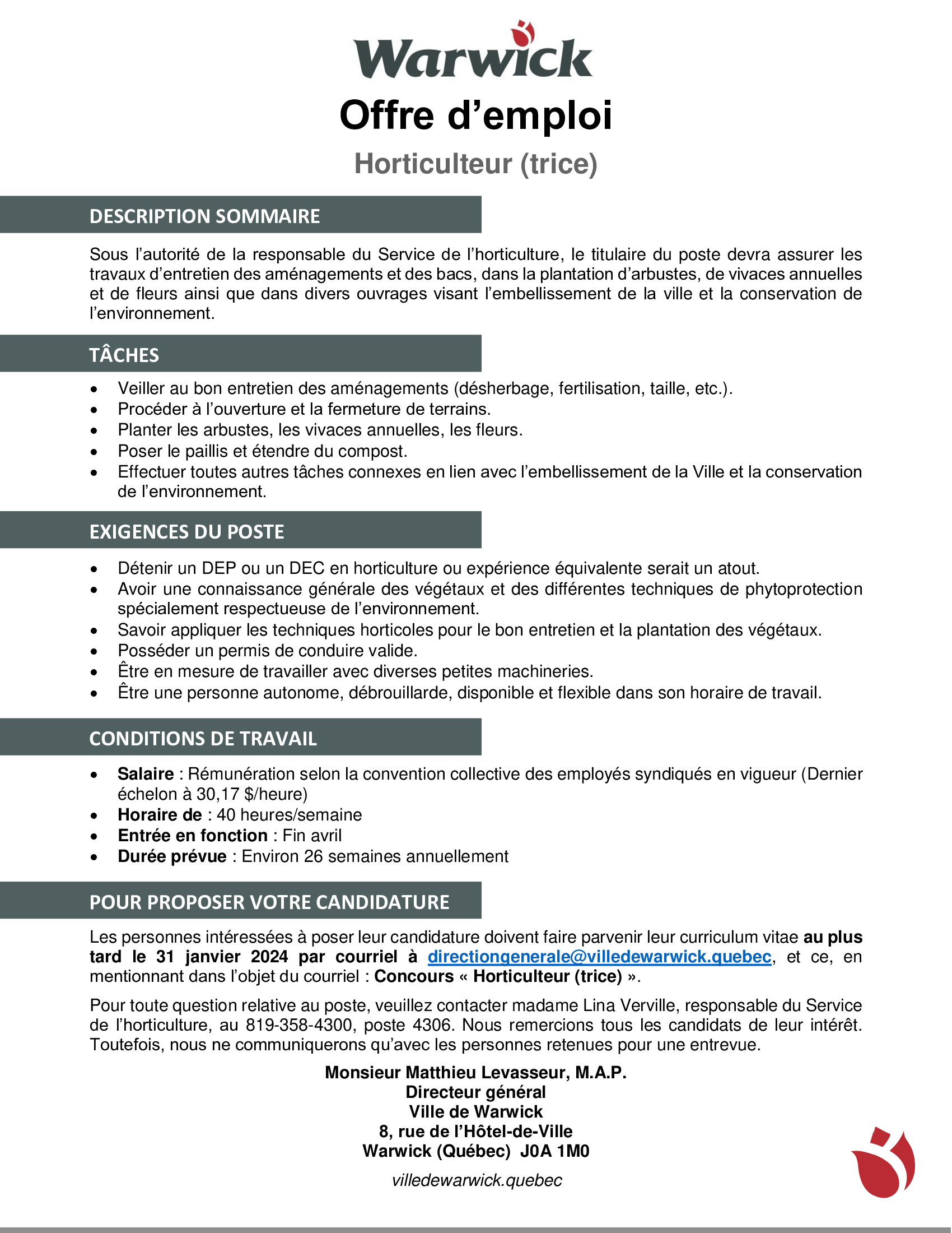 8, rue de l’Hôtel-de-Ville Warwick (Québec) J0A 1M0